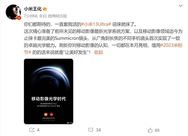 小米13 Ultra就要来了:小米王化亲自曝光