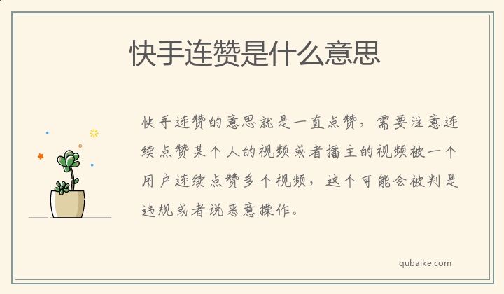 快手连赞的意思就是一直点赞,需要注意连续点赞某个人的视频或者播主的视频被一个用户连续点赞多个视频,这个可能会被判是违规或者说恶意操作。