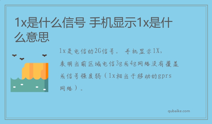 1x是电信的2G信号。 手机显示1X,表明当前区域电信3g或4g网络没有覆盖或信号强度弱(1x相当于移动的gprs网络)。