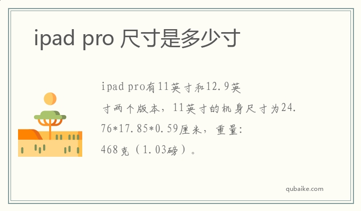 ipad pro有11英寸和12.9英寸两个版本,11英寸的机身尺寸为24.76*17.85*0.59厘米,重量:468克(1.03磅)。