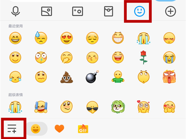0qq关闭超大表情1.打开QQ聊天页,点击表情商城图标进去。