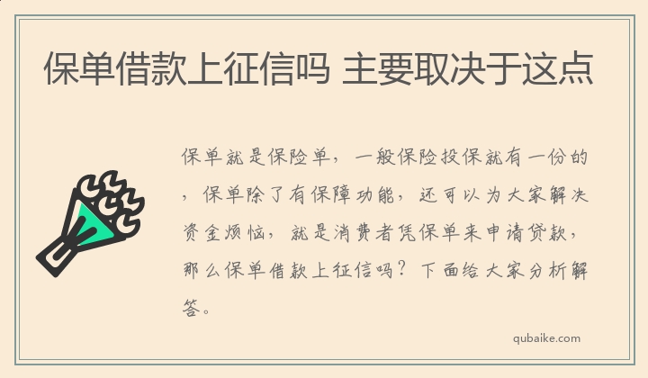 保单就是保险单,一般保险投保就有一份的,保单除了有保障功能,还可以为大家解决资金烦恼,就是消费者凭保单来申请贷款,那么保单借款上征信吗?下面给大家分析解答。
