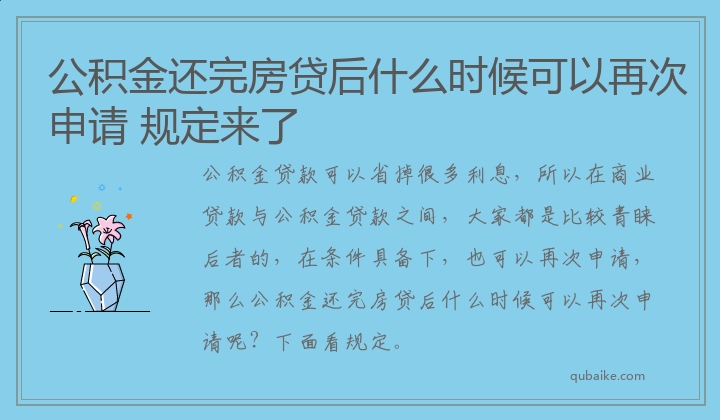 公积金还完房贷后什么时候可以再次申请 规定来了