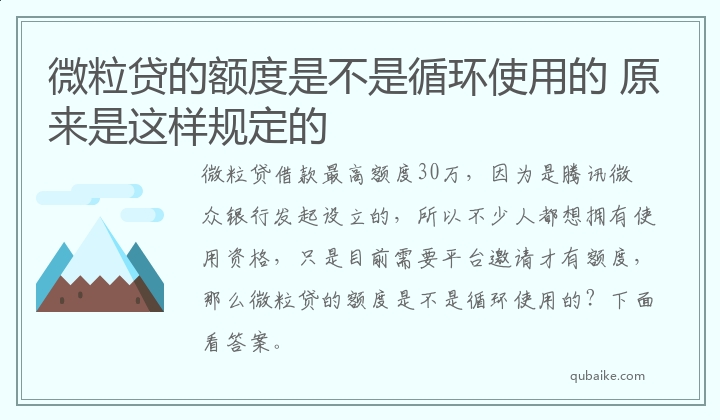 微粒贷的额度是不是循环使用的 原来是这样规定的