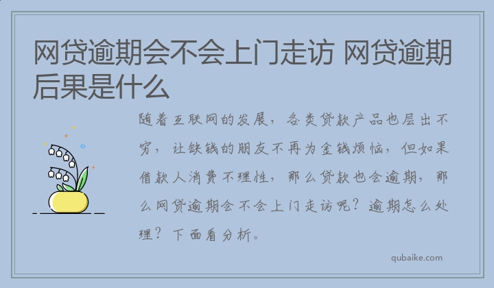 网贷逾期会不会上门走访 网贷逾期后果是什么
