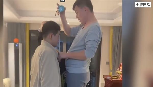 网传一个很火的视频,爸爸站在桌上测量孩子的身高,孩子身高高达1米91。