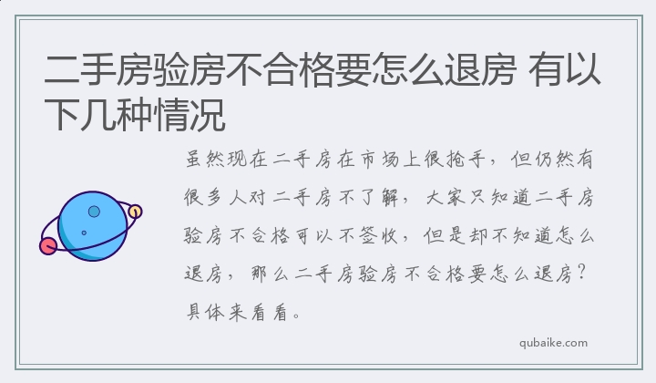 虽然现在二手房在市场上很抢手,但仍然有很多人对二手房不了解,大家只知道二手房验房不合格可以不签收,但是却不知道怎么退房,那么二手房验房不合格要怎么退房?具体来看看。