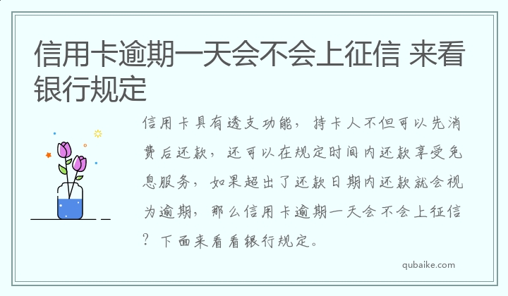 信用卡具有透支功能,持卡人不但可以先消费后还款,还可以在规定时间内还款享受免息服务,如果超出了还款日期内还款就会视为逾期,那么信用卡逾期一天会不会上征信?下面来看看银行规定。