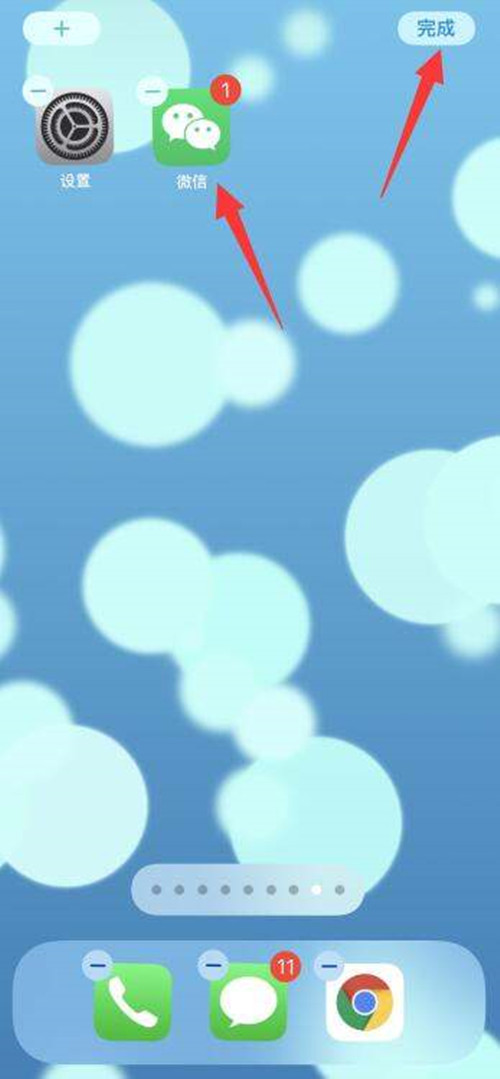 3、并长按要恢复APP拖动到桌面,点击完成即可。