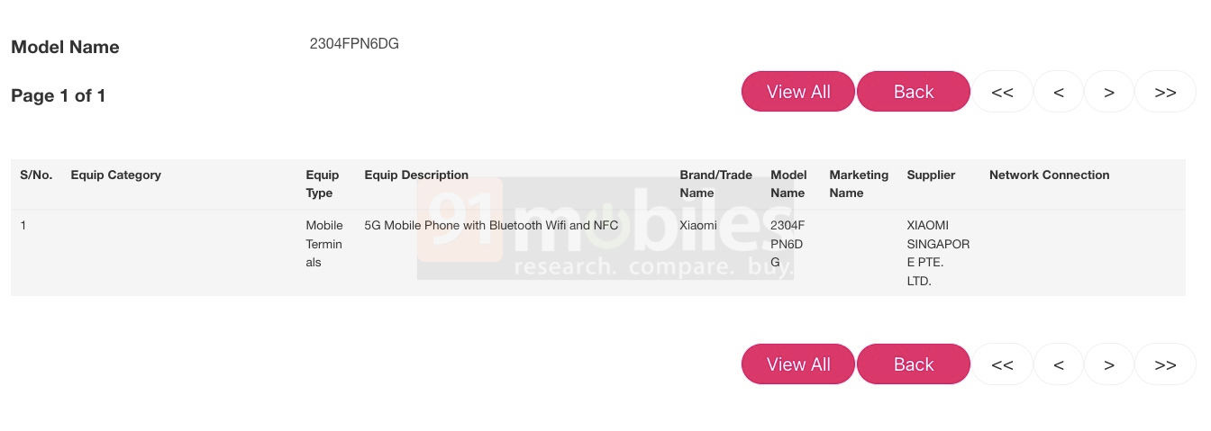 即将上市的小米 13 Ultra 已在新加坡 IMDA 认证网站上被发现,型号为 2304FPN6DG,该智能手机将支持 5G、蓝牙、WiFi 和 NFC 等规格。