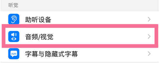 2、在辅助功能页面,点击【音频/视觉】。