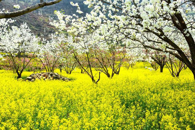 这里春季万亩梨花盛开,夏季绿意盎然,秋季瓜果飘香,冬季红叶似火,四季景色美不胜收。尤其是这里的梨花谷,被誉为“中国最美的梨花之乡”。