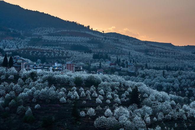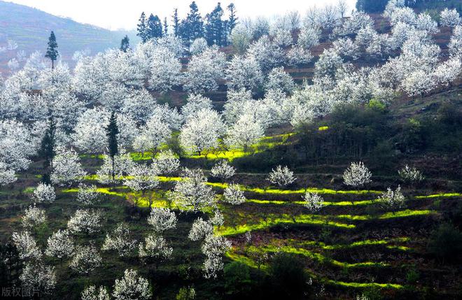 梨花谷每年3月伊始,上万亩梨花竞相怒放,形成起伏绵延的花山花海,蔚为壮观,引得八方游客循着春的消息纷至沓来,到这里欣赏梨花美景。