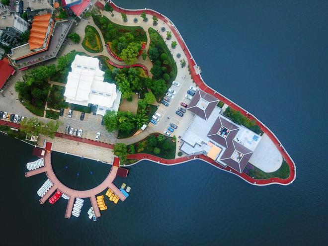 个旧市区处于两山之间,中间有一个被群山和城市包围的湖,那就是金湖。