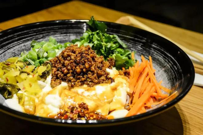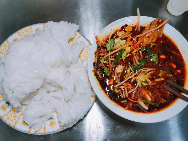 蘸水卷粉的灵魂在于它的蘸水。一般蘸水内容会非常丰富,会加上香酥碎、豆子、蔬菜......个旧特有的甜辣味,很是爽口。