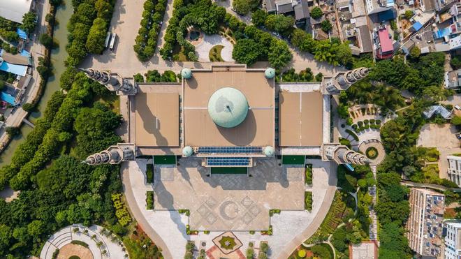 它是国内面积最大的清真寺,整个大殿没有柱子,顶上圆形穹顶有各种装饰雕刻。典雅气派的建筑,仿佛置身迪拜,再加上椰树成林,随手一拍就是大片!