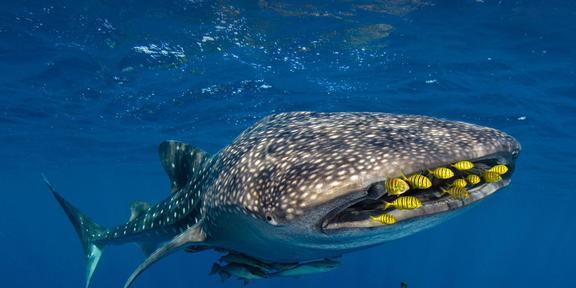 马尔代夫是地球上为数不多的一年四季都能看到世界上最大的鱼--华丽的鲸鲨的地方之一。