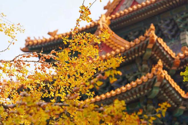 彩叶映衬着宫墙琉璃瓦