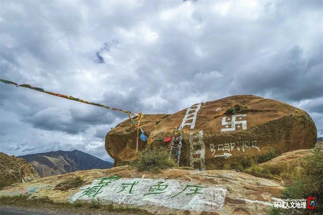 Δ 图一为村落刻有“藏式鱼庄”的大石;图二、三为俊巴村烹饪鱼类的场景。