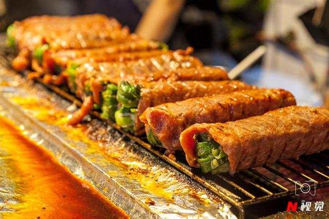 每晚夜幕落下,霓虹初上,夜市灯火璀璨,流光溢彩,分外耀眼。来往过客,悠闲行人,一边是寂静鸟虫蛰伏低唱,一边是热闹商贩的叫喊。一座座灯牌,一个个广告,沿路走去,尽数揽入眼中。