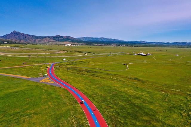 位于呼和浩特市东北部的阴山山脉大青山南麓的敕勒川草原(9月6日摄,无人机照片)。新华社记者 彭源 摄