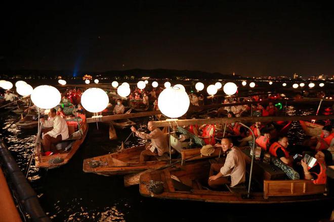 今年主办方特别增加了西湖游船,为市民游客提供上岛夜游体验——随着西湖游船,于清风朗月之下,缓缓抵达小瀛洲岛。