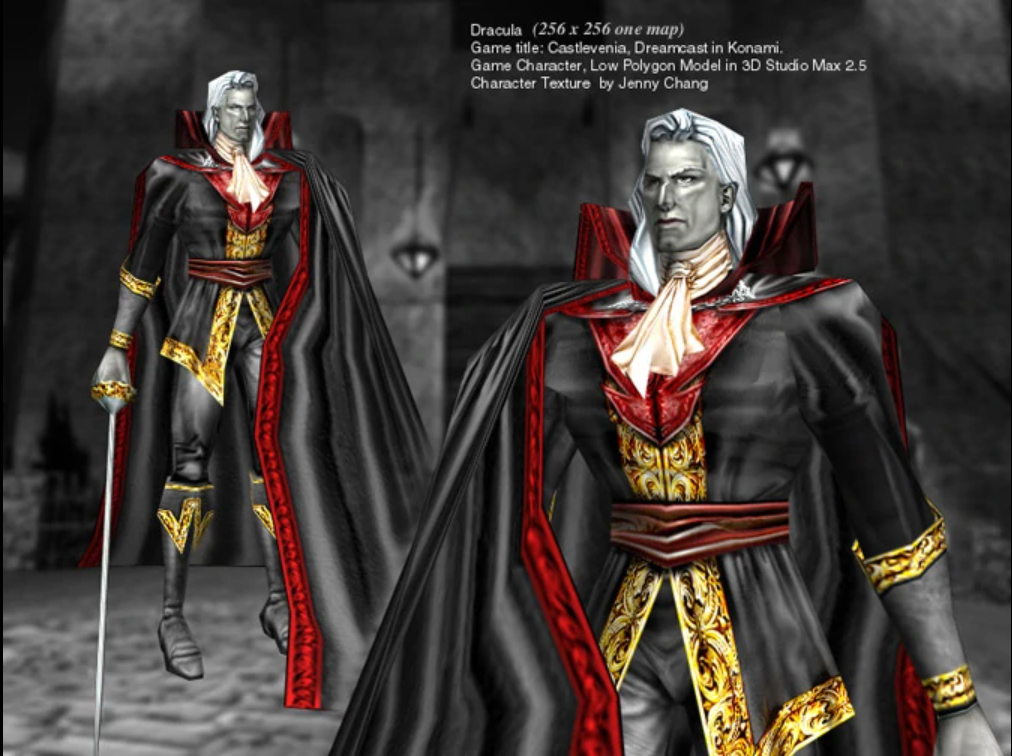 最终 BOSS 德古拉的造型,和我们印象中没多大区别。当时的 3D 技术能做得这样已经很不错了。