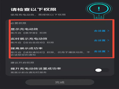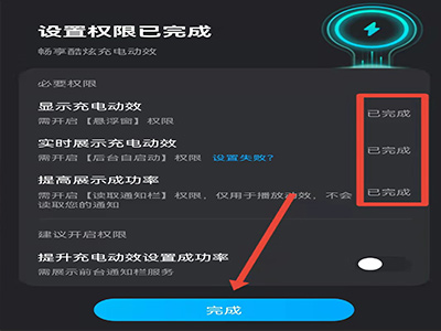 4、完成“显示充电动效”、“实时展示充电动效”、“提高展示成功率”权限的设置。