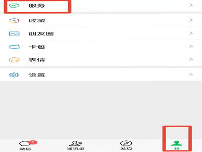 1、打开微信app,切换到“我”的页面,点击“服务”。