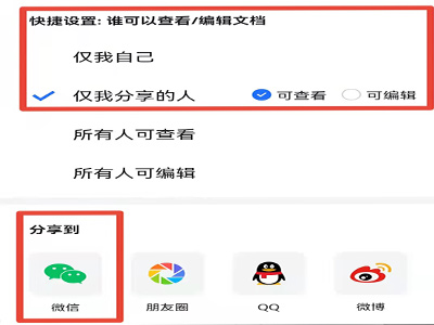 3、设置“谁可以查看和编辑文档”,选择分享到“微信”。
