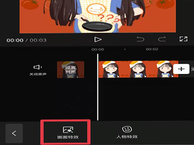 3、在创作页面,点击下方的“特效”,选择“画面特效”。