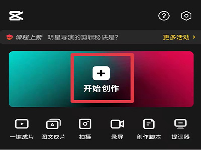 1、打开剪映app,点击上方“开始创作”的“+”图标。