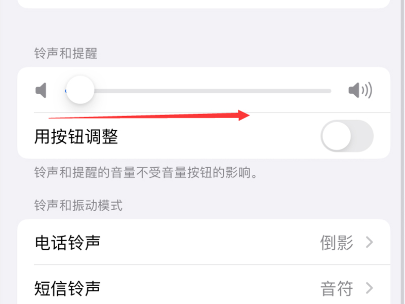 3、把“铃声和提醒”下方的调节条向右滑动调大音量即可。