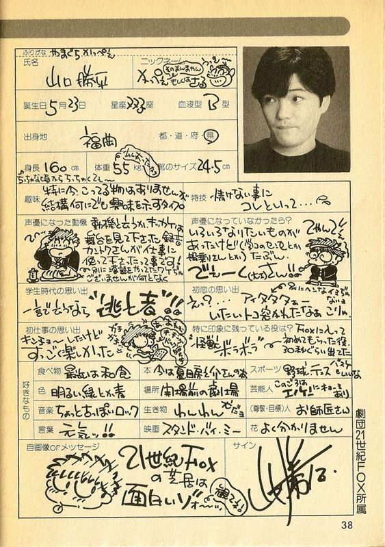"《死亡笔记》L(L·Lawliet)(主役) 《海贼王》乌索普(主役) 《小俏妞/偶像天使阳子》(アイドル天使ようこそようこ)安 《天使之羽》羽村翔(主役) 《名侦探柯南》工藤新一(幽灵主役)、怪盗基德(黑羽快斗)(《魔术快斗》主役) 《青山刚昌短篇集》高井丰、樱三十郎(主役) 《樱桃小丸子》大野健一 《犬夜叉》犬夜叉(主役) 《安琪莉可Abyss》鲁涅(幽灵主役?) 《乱马1/2》早乙女乱马(男)(主役) 《金田一少年之事件簿》剧场版之《新歌剧院杀人事件》金田一一(主役) 《金田一少年之事件簿》TV版之《底片里的不在场证明》美隅阳平(131集) 《数码宝贝》芝蒙兽 《夫妻成长日记》山田拓 《爱天使传说(婚纱小天使)》雨野拓郎 《忍者乱太郎》花房牧之介 《东京巴比伦》皇昴流(主役) 《ArslanSenki》Arslan(主役)《圣传》龙王(主役) 《魔女宅急便》蜻蜓(主役) 《机动武斗传G高达》蔡采施 《超级机器人大战OG》神宫寺佑 《重生传说》缇特雷 《里见八犬传》犬川庄助 《罗德岛战记》Eto 《含羞草》秋叶习(主役) 《CLAMP学园侦探团》东国丸健多朗 《鬼神童子ZENKI》童子身前鬼(主役) 《地球守护灵》笠间春彦(主役) 《钢铁神兵》卡米拉 《银河战国群雄传》太助 《幽游白书》阵 《Clamp学园侦探团》伊集院玲 《KO世纪三兽士》WanDabada 《万有引力》佐久间龙一 《绿林寮》小泉典马(主役)吸血姬美夕神魔红惑《亚尔斯兰战记》亚尔斯兰(主役) 《十二国记》延麒六太 《吸血姬美夕》神魔红惑 《BADBOYS5》麻生拓也 《ゲゲゲの鬼太郎》第5季忙碌 《学校的幽灵4》康夫 《勇者指令》宇津见雷[1]《妈妈是小学四年级学生》花田英夫 《咕噜咕噜魔法阵》尼克莫王子 《不思议海之娜迪亚》哈玛哈玛 《秋叶原电脑组》白王子 《天才宝贝》夏木拓也(主役) 《近所物语》山口熏(主役) 《鼠辈怪盗》无音宙太(主役)神风怪盗贞德诺因-克洛德《白雪姬传说》森之少年 《天空之艾斯嘉科尼》歇斯达 《足球小将J》石崎了 《天使领域》岬了《绝爱1989/BRONZE》涉谷克已 《小红帽恰恰》朝太郎(29集) 《时空侦探》鸣神京一郎 《守护我们的地球》笠间春彦(主役) 《高校武斗传》安田泰男 《樱花大战》千松 《真学校的幽灵》山岳部员 《THE八犬传[新章]》犬川壮助 《新撰组异闻录》永仓新八 《光速蒙面侠21号》雷门太郎 《金童卡修》达尼 《美少女战士真人版》亚尔提米斯 《初音岛2》板桥涉 《铳梦》尤浩《大剑Claymore》觉醒者男 《植木的法则》宗屋秀吉 《妹妹公主》山田太郎 《我家有个狐仙大人》拜一刀 《秘密TheRevelation》张真(18集) 《游戏王GX》大德寺老师 《毁灭世界的六人》28号(10集) 《ONEOUTS(超智游戏)》出口智志 《蓝龙》安德洛波夫 《天界的七龙》安德洛波夫 《变形金刚·野兽之战》精灵鼠 《神风怪盗贞德》诺恩?克罗特(紫界堂圣) 《老师的时间》末武健太 《浪客剑心——给维新战士的安魂曲》武藏野泰春 《地狱少女三鼎》12集乃村信夫《出包王女》拉克斯波(11集) 《潘多拉之心》柴郡猫 《樱桃小丸子》大野健一(剧场版《友情岁月》) 《光之美少女SplashStar》弗拉比(フラッピ,又译拉比) 《邦尼兔(又译兔八哥)》邦尼兔(主役) 《KERORO军曹》新兵TORORO第280话下篇萝卜机师 《宠物小精灵不可思议的迷宫空之探险队》小火猴 《cowboybebop》リント·セロニアス|RHINTCELONIAS|林特·瑟罗尼亚斯 《银河英雄传说》蓝培兹(99集) 《犬夜叉完结篇》犬夜叉(主役) 《枪之国度》土狼 《怪谈餐馆》バク 《魔术快斗》黑羽快斗(主役) 《超智游戏》出口 《爆弹小新娘》岩城友纪《钢铁三国志》张辽文远 《牙KIBA》修 《变形金刚·Animated》天火 《创龙传》龙堂余 《你好象很美味啊》恐龙哈特 《白色猎人2》泉世南(セナ) 《大剑》男觉醒者3(第18话) 《猴王五九》五九(主役) 《Dororon炎魔君熊熊燃烧》炎魔君(主役)"