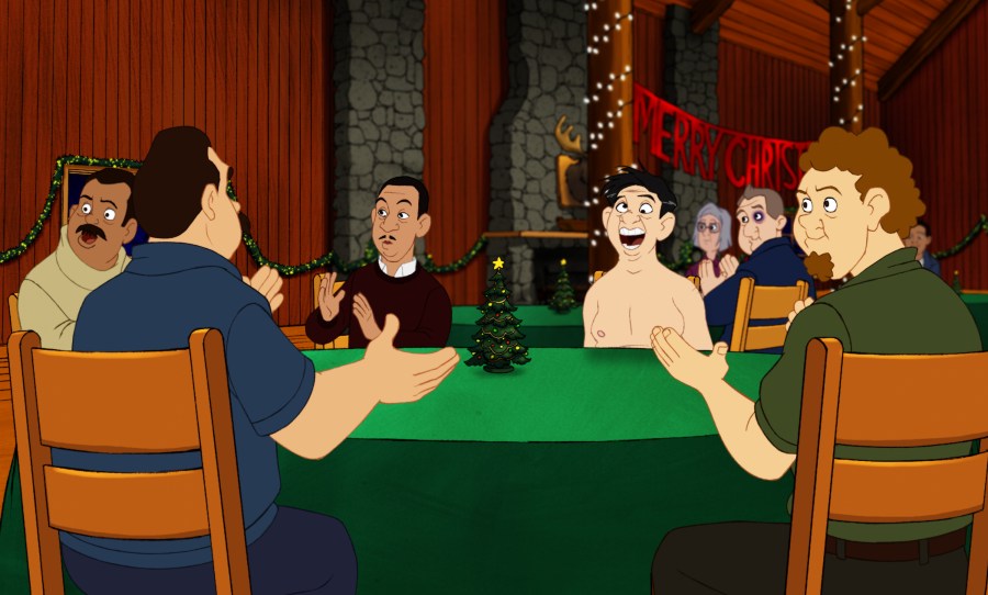 圣诞节快到了,小镇上到处洋溢着节日的喜庆气氛。33岁的戴维·斯通(亚当·桑德勒配音)来了,他正 打着饱嗝,带着满身的酒气,踩着滑雪板横冲直撞过来,人们纷纷躲避。不一会儿一辆呼啸着警笛的警车开来,将醉醺醺的戴维逮捕抓了起来。