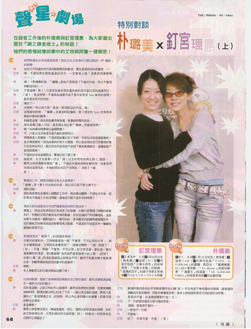 》中的逢坂大河、《旋风管家》中的三千院凪、《零之使魔》中的露易丝、《钢之炼金术师》中的阿尔冯斯·艾尔利克、《银魂》中的神乐
