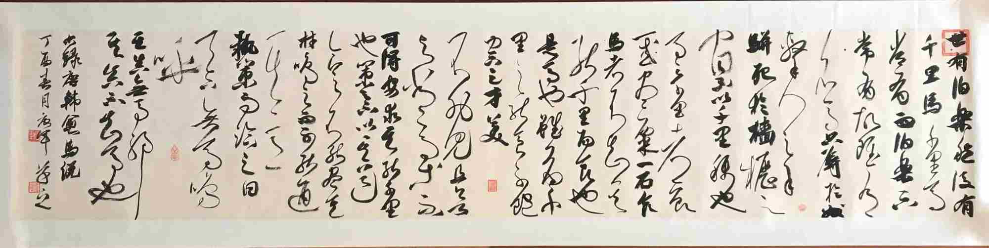 唐军,字继东。步逸堂主。南樵居士。居住上海市闵行。喜欢中国传统文化诗词歌赋。自幼习颜楷,欧楷。于二王、颜鲁公,欧阳率更、米南宫、祝枝山用心临摹。尤喜小王草书,倾情着力于怀素、山谷、傅山、王铎技法!后受教于众方家,转益多师,受益良多。现为上海市书法家协会会员,安徽省书法家协会会员。