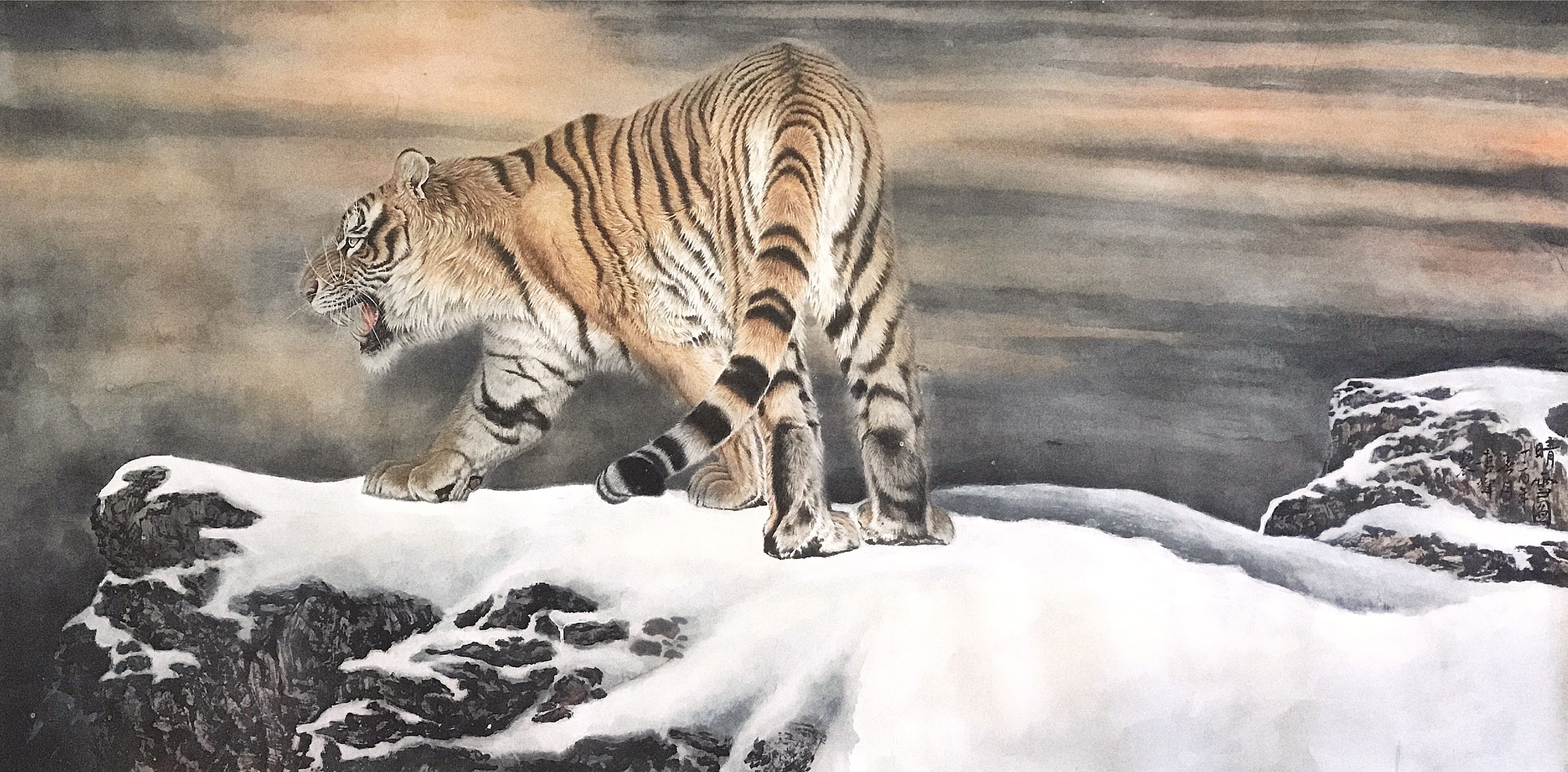 李辉,斋号寅风堂,1981年2月出生于安徽黄山,2001年毕业于湖北美术学院。自幼双耳失聪,3岁习画。1997年,其绘画天赋被一外国旅行团发现,并于4月在加拿大举办个人画展,国内外艺术圈的极大轰动。之后就读湖北美术学院,进行了系统的理论及创作学习,续研摹数十载。创作以工笔鸟兽见长,犹以百兽之王的猛虎为最,曾多次获得全国美术大展各类奖项 。现为中国国画艺术研究院院士,中国国画院院士,西泠艺术研究院副院长,安徽省美术家协会会员, 新安书画家协会理事,其作品每平尺5000元。