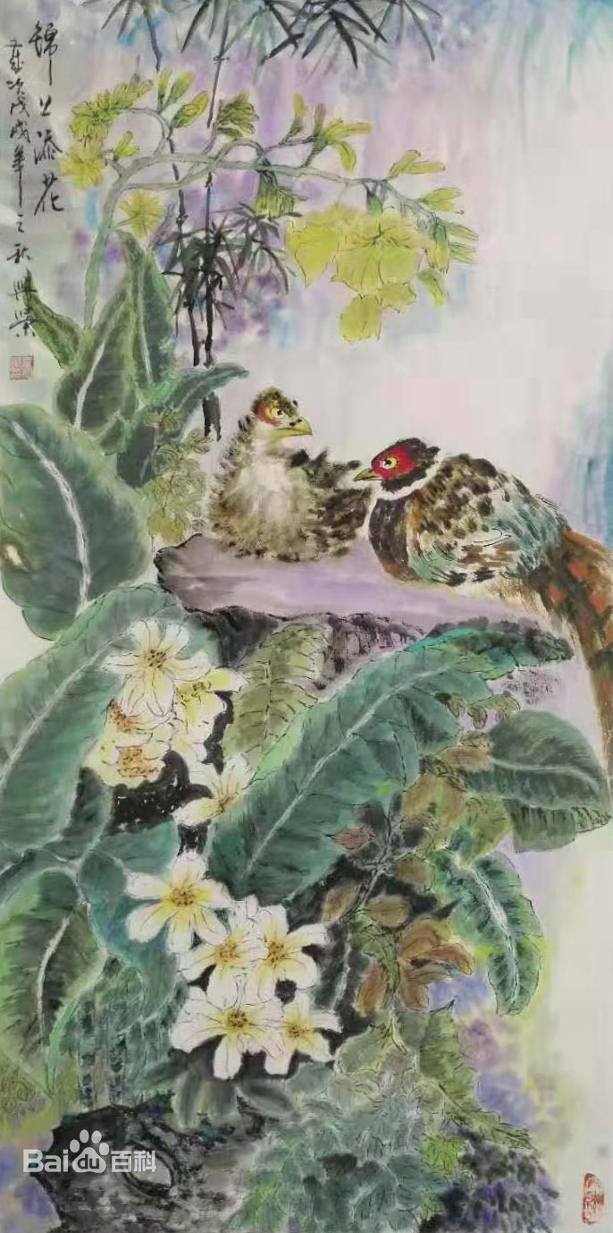 她拜读过许多名人作品,经过十几年的绘画练习和经验,现在有自己的一套画法,她喜欢花鸟,山水,她认为,艺术也是为大众服务的,要创作出让老百姓喜欢,看的懂的作品,画出来的作品大气,不小气不俗气。很受欢迎,例如袁兴荣画的孔雀,不用工笔,而用小写意的画法表现出来,配一些花草石头,使画面丰富多彩,艳而不俗,画出来的迎客松,画面滂沱大气,很受老百姓喜欢。