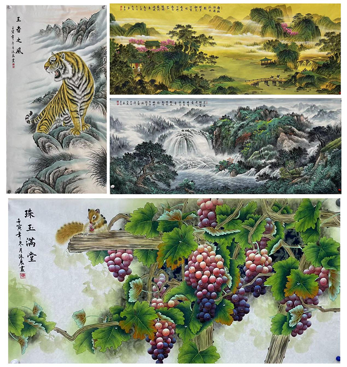 代表作品:《百虎图》 《清明上河图》 《千里江山》 《荷塘清韵》 《富贵吉祥》 《万里雄风》等
