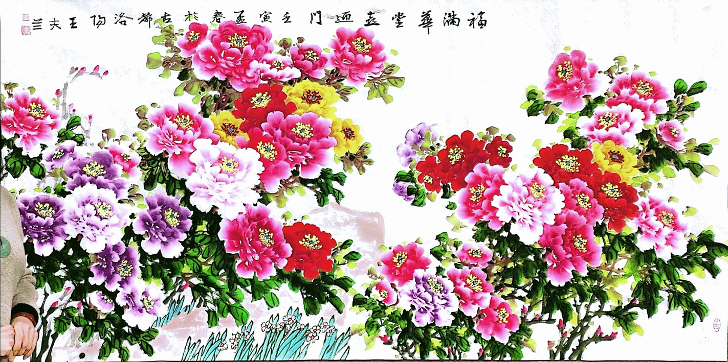 洛阳“牡丹仙子”王夫兰,实力派画家。自幼酷爱书画,师从多位名家学习。擅长写意花鸟画,对牡丹情有独钟。其作品立足传统,与时俱进。她笔下的牡丹“无须千万朵,一枝醉春风。画风清新明快,色彩艳丽而不媚俗,笔墨酣畅淋漓,尚意趣、重抒写。近年多以大幅牡丹作品参加省及全国性书画大展并多次获奖。作品深受国内外友好人士及爱好者喜爱并收藏。2019年作品《春风送雅香》荣获中国第二届民间书画艺术展银奖 并授予 2018年“人民艺术之星”称号。 2019年“金秋赞歌”中国农民书画展览中作品《富贵吉祥》荣获优秀奖并特聘为“人民艺术创作院文化交流中心签约艺术家”2019年在第十五届海峡两岸书画名家作品展活动中作品《花开吉祥》荣获“银奖”并颁发证书及奖杯。2019年在纪念建国七十周年两岸书画名家作品展活动中作品《富贵福满堂》荣获“特等奖”并颁发证书。2019年,作品《醉春风》成功入展“埾地杯”全国书画邀请展。2019年被河南省教育基金协会授予"爱心大使"荣誉称号。2019年洛阳市老干部书画展作品《春来谁作韶华主》荣获三等奖,并颁发证书。2020年作品《紫气东来》>荣获“浙商杯”全国牡丹艺术大赛“创新奖”2020年作品《花开吉祥》在洛阳市总工会“走向小康生活,建设美丽洛阳”迎国庆美术展中,荣获三等奖。2020年作品《清莲》入展河南省花鸟研究会中国画荷花作品展。