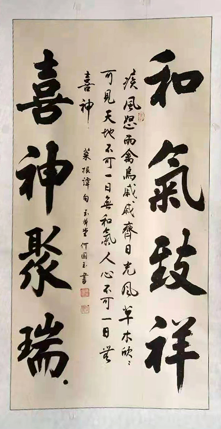 何国玉,男,1956年生,河北石家庄人,别署玉荷堂主人。何国玉先生出生于书画世家,在先辈影响下自幼苦爱书画50余年笔耕不辍。从唐楷入手学习后临摹研习二王、欧、颜、柳、赵诸体,主攻欧楷和赵楷,后又研习陆柬之行书,源于古人而别于古人,广采众家之长,有扎实的书法功底。书法风格上的主要特点是严谨工整、平正峭劲。整齐严谨,中宫紧密,主笔伸长,显得气势奔放,有疏有密,气韵生动,恰到好处。点画配合,结构安排,则是平正中寓峭劲,自成一格,是一个正统派、功力型的书法家,其作品极具收藏价值。