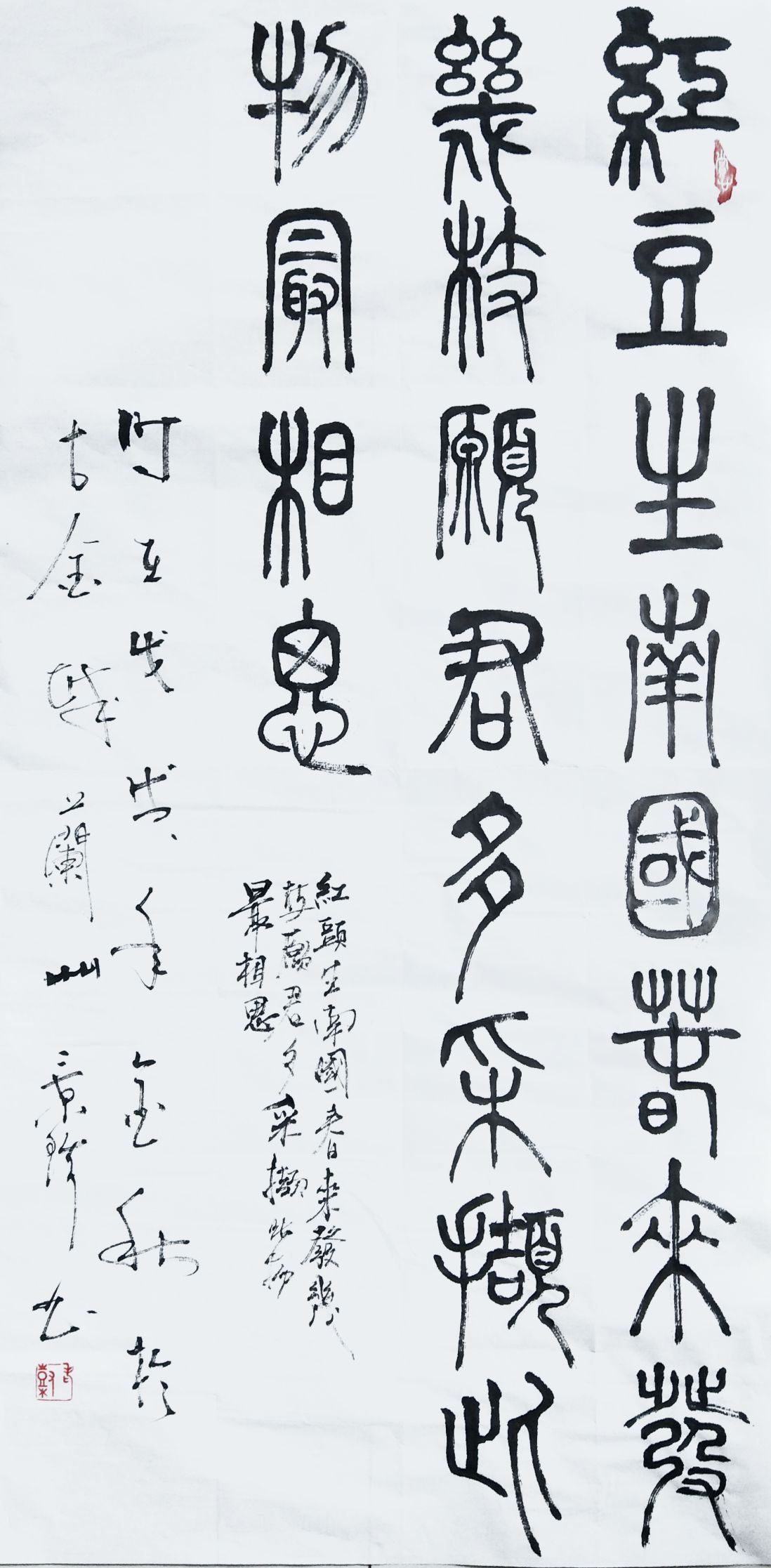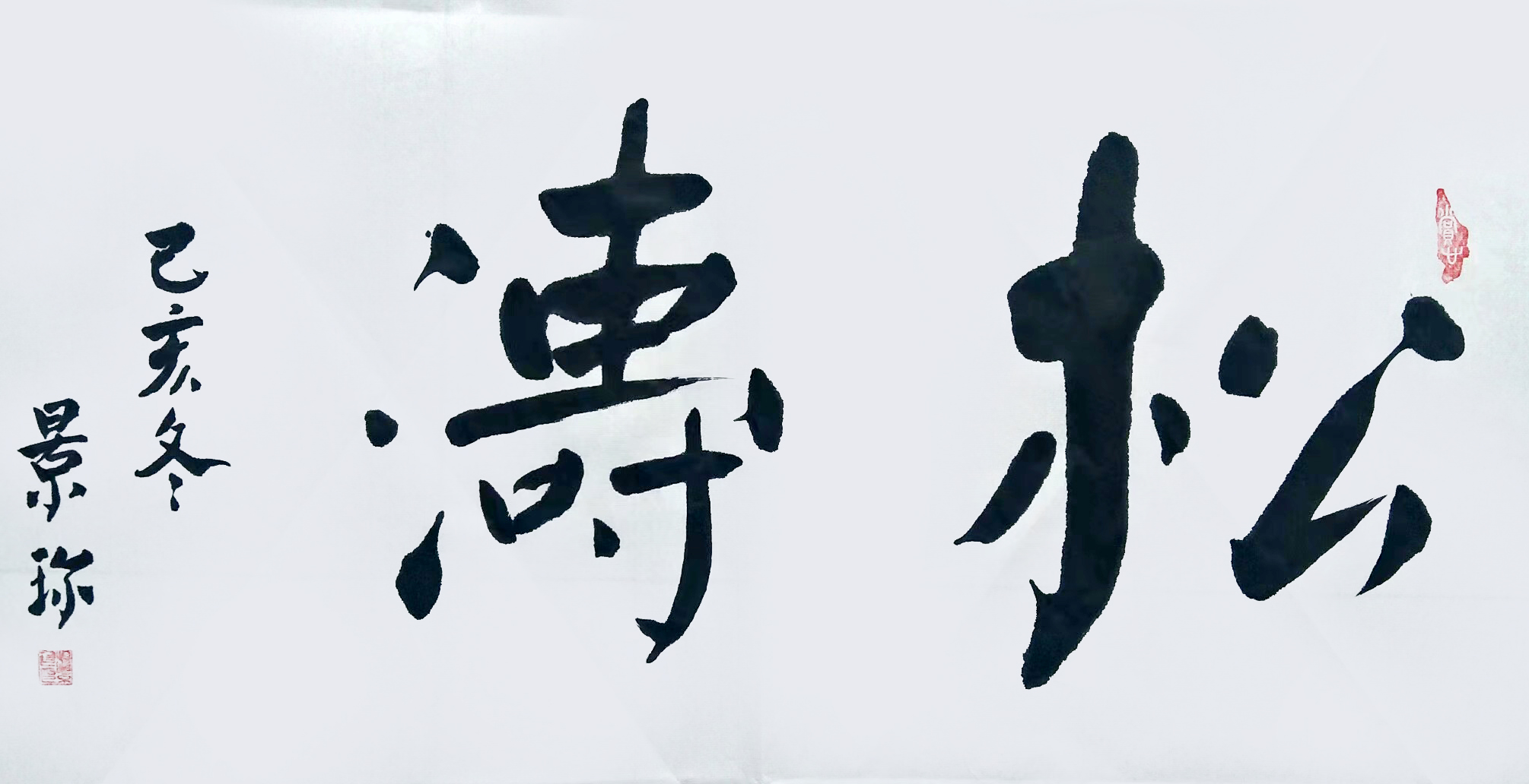 颇有书卷气息的塑造!书法创作一直有个“书如其人”的说法,但是人们往往误解了这种说法,硬把书法与德修联系在一起的做法是不正确的,“书如其人”的真正意义是书法与性格是相通的。杨景珍先生的性格是儒雅的,情感是含蓄与奔放相兼顾的,这就让他的书法可以完全与性格相通,比如写《松涛》,写出来的自然有性灵豁畅的仪态,也有牵丝映带的委婉。刚柔相济是其心境,也是其书风!这是东方的哲学核心,也是中国的文化力量。