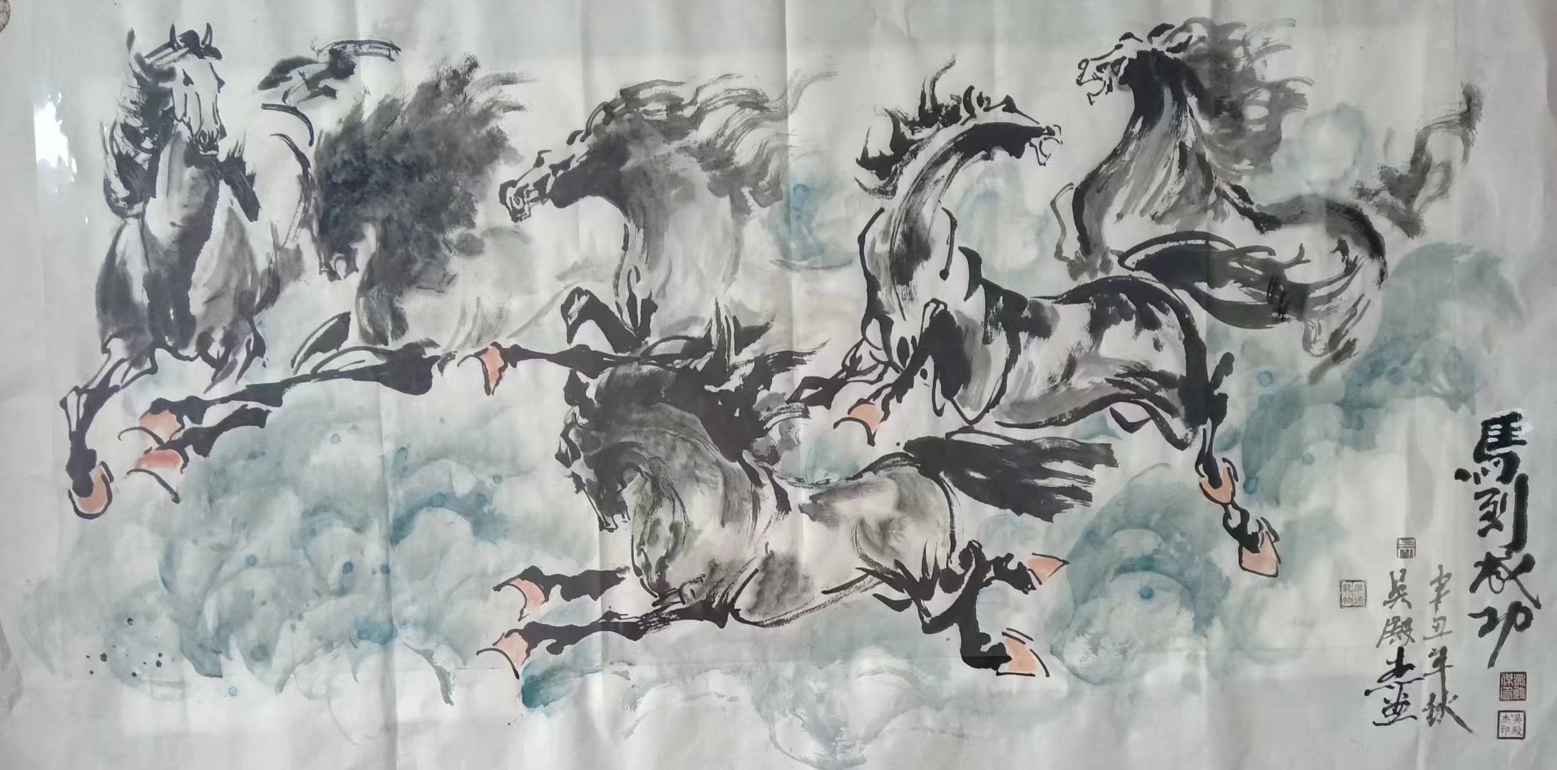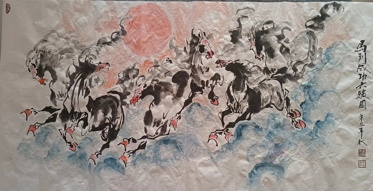 创作于2021年的4尺横幅“马到成功六骏图”被中国国家博物馆收藏,收藏号:国博收藏2037号。