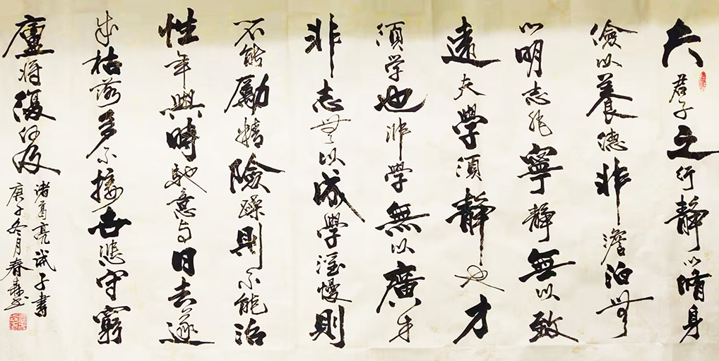 2019年在纪念孔子诞辰2570年中国孔子国际书法艺术大展中作品“海纳百川”荣获一等奖;