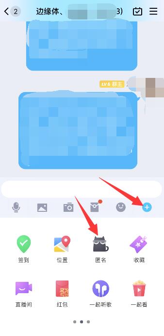 进入聊天界面,点击加号图标,点击匿名选项。