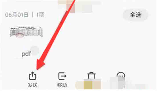 2、在文档管理中找到下载的文件,长按后点击【发送】。