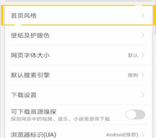 3、下拉找到首页设置风格
