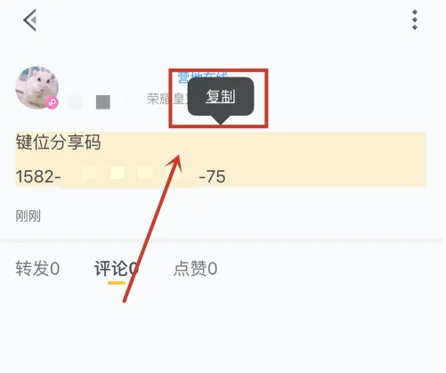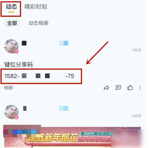 找到动态后进行长按键位分享码。
