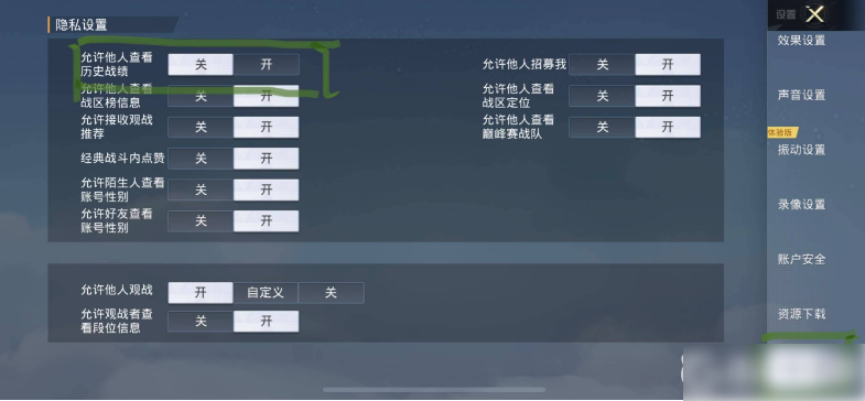 4、在这里可以去设置关闭允许他人查看历史战绩。
